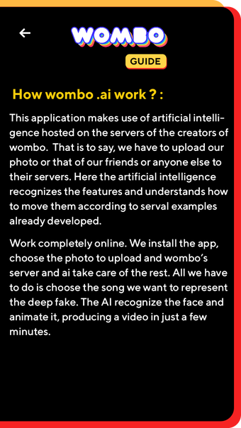 Informacje o aplikacji Face Animator Helper - Przewodnik po edytorze wideo Wombo AI na Androida